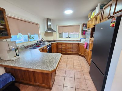 - Large timber kitchen with breakfast bar and ample cupboard space